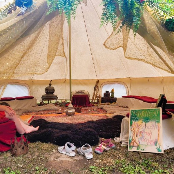 Die Zeltflügel des märchenhaft-nomadisch geschmückten Rundzeltes werden wieder weit geöffnet sein und lassen Groß und Klein in eine märchenhafte Zauberwelt eintauchen.